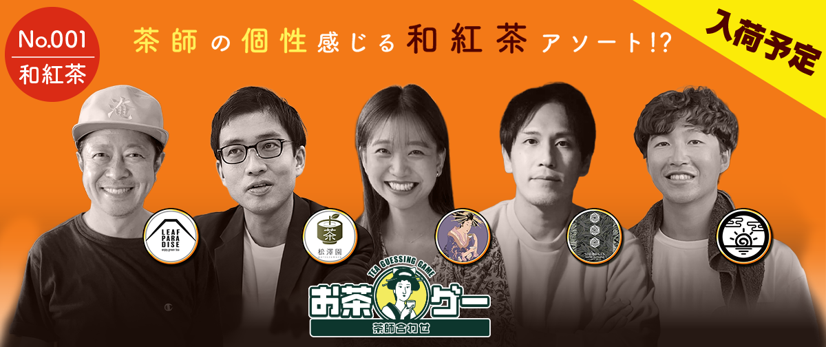 「お茶ゲー 茶師合わせ〜私はXXXな茶師です〜」は個性豊かな5人の茶師による飲み当てゲームもできる日本茶アソートセットです。 【その和紅茶はいったいどの茶師が製茶したのか?】 和紅茶を飲んで「茶師カード」を手がかりに、そのお茶を製茶した茶師を推理します!もちろんゲームをせずにゆっくりお茶を飲むだけでも楽しめます。 【参加茶師】 ・ヤマカ勝山商店 勝山喜弘さん ・松澤園 松澤康之さん ・的場園 的場龍太郎さん ・UKIYO TEA 丸山ひとみさん ・日本茶専門店うずまき屋 向井康太郎さん <概要> ・お茶は5色に色分けされたパッケージの1煎パックです。 ・パッケージにはお茶の情報は記載されていません。 ・和紅茶を製茶した茶師は、スクラッチをこするとわかります。 ・1人でも複数人数でも楽しむことができます(1人〜5人推奨)。 ・飲み当てゲームをしたい人もお茶を飲むだけの人も楽しむことができます。 ・茶師カードは「茶師のプロフィール」や飲み当てのヒントとなる茶師の「お茶作りへの想い」や今回使用した「お茶の特徴」などを知ることができます。 飲み当てゲームはいたってシンプルです。 1)お茶を淹れて飲む 2)茶師カードの裏面を読んでどの茶師のお茶か推理する 3)スクラッチをこすって答えあわせをする ※前作ではお茶の淹れ方が特殊だったりお茶を評価するという流れがありましたが今回はそういったものがなくいたってシンプルです。 <楽しみ方の例> 使い方に決まりはありませんがこんな楽しみ方もあります。 【1人でのんびりと】 ・気になる茶師のお茶を日ごとに1種類づつ飲む。 ・5種類のお茶の飲み当てゲームをする。 【みんなでわいわい】 ・5人で1人1種類ずつお茶を選んで自分がどれを飲んだか当てる。 ・5種類のお茶をみんなでシェアして飲み当てゲームをする。 「お茶ゲー」の目的はお茶を当てることではありません。 飲み手がお茶を当てることでワクワクしたり、お茶に五感を集中させたり、作り手の話をじっくり読もうとすることが一番が大事なことと考えています。どうか当たらなくてもがっかりせずにお茶の違いを感じたことに喜びを感じてほしいです。 【茶師合わせの今後の展開】 お茶ゲー〜茶師合わせ〜は「No.001和紅茶」を皮切りに、スピード感をもって新しいシーリズを発表し、お茶の種類や産地など様々なテーマで全国のお茶と生産者さんを紹介していくメディア的な役割も果たす商品を目指していきます。