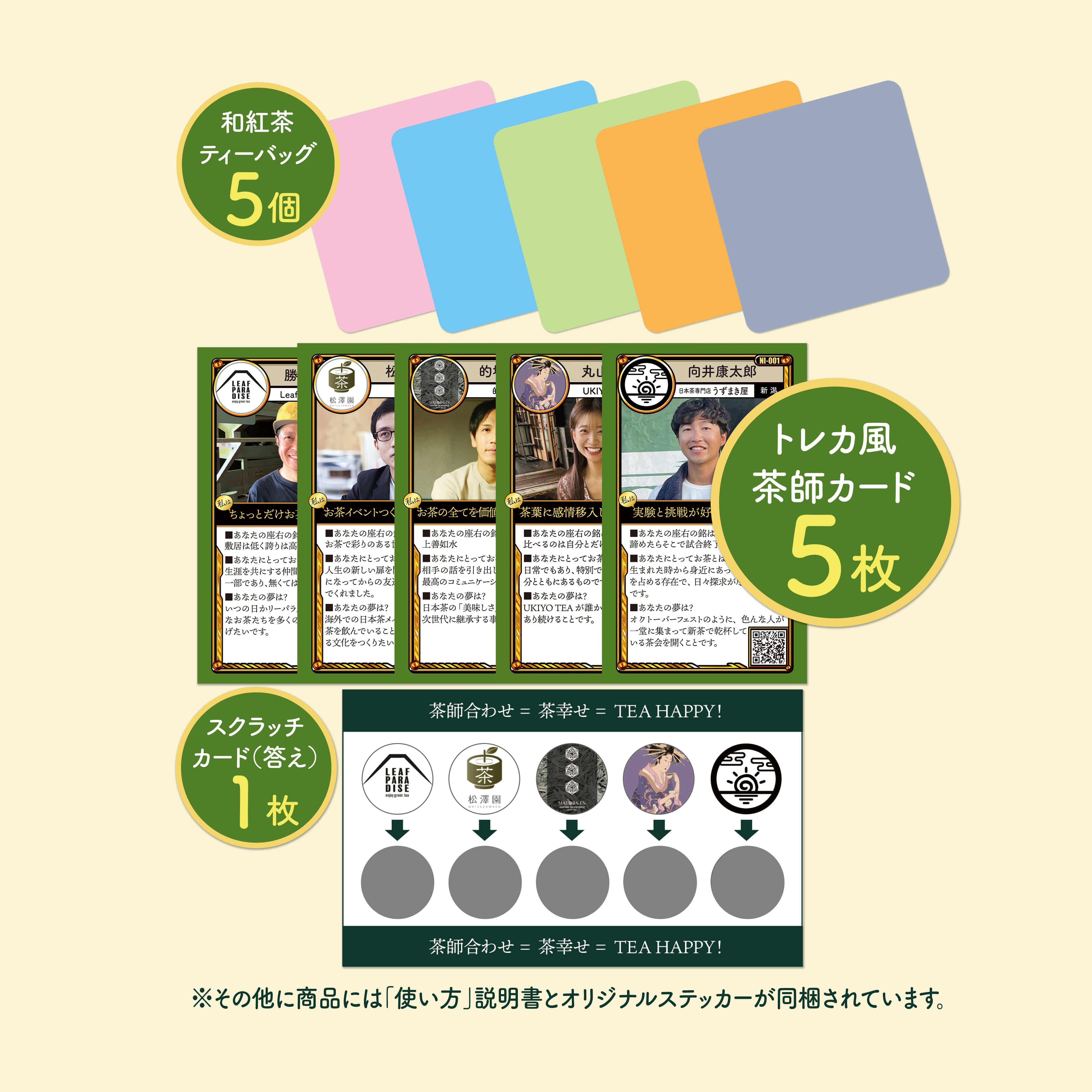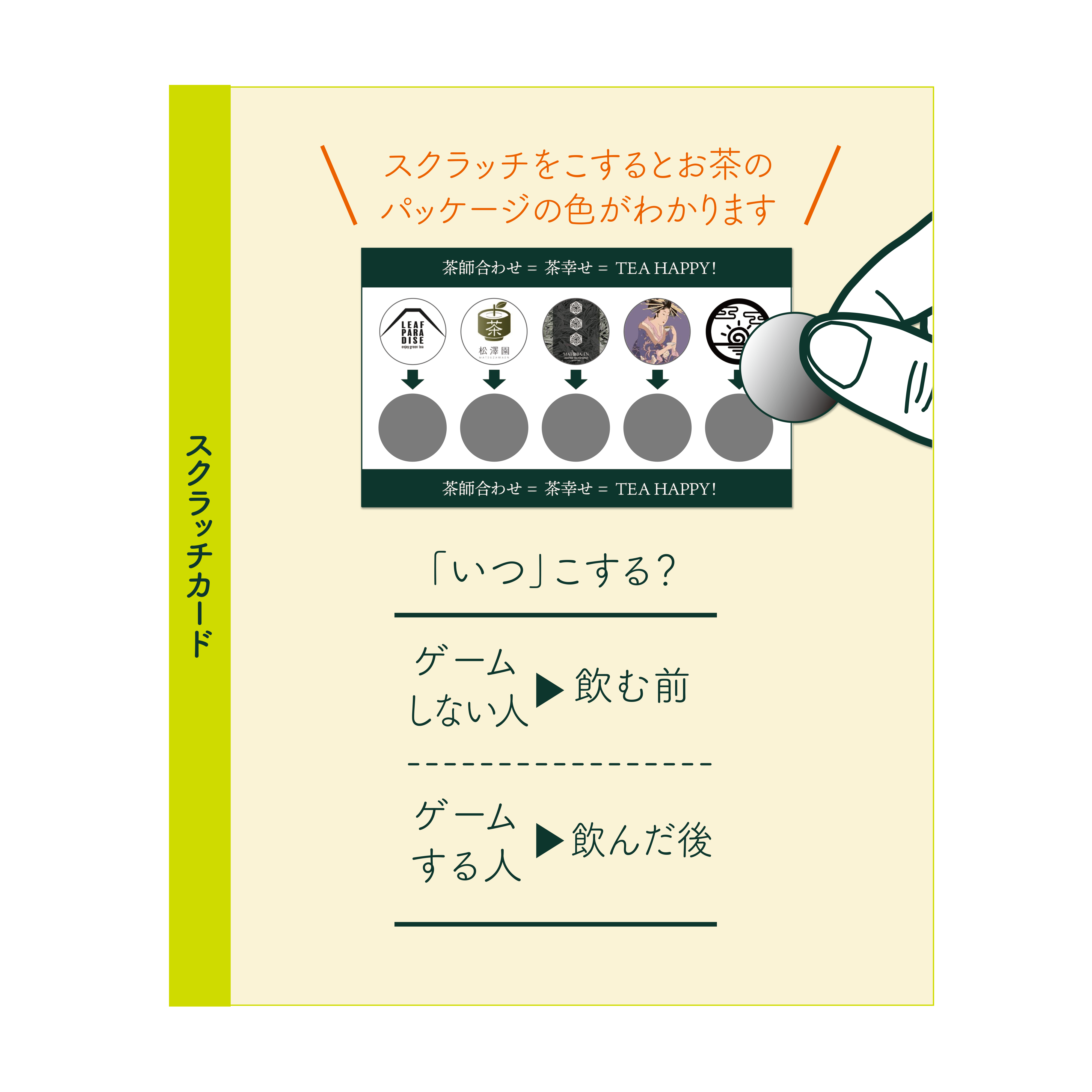 和紅茶を飲んで「茶師カード」を手がかりに、そのお茶を製茶した茶師を推理します!もちろんゲームをせずにゆっくりお茶を飲むだけでも楽しめます。